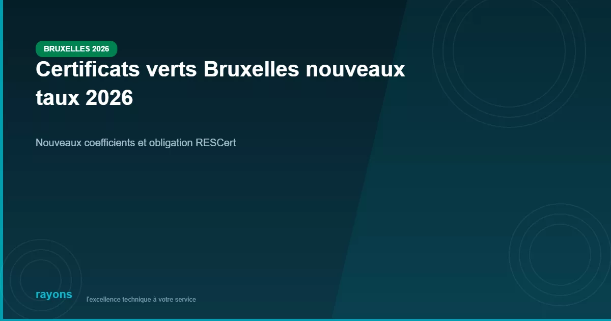 Chez Rayons, nos installateurs sont certifiés RESCert. Chaque installation que nous réalisons à Bruxelles est accompagnée de ce certificat, vous garantissant l’accès aux certificats verts dès la mise en service.